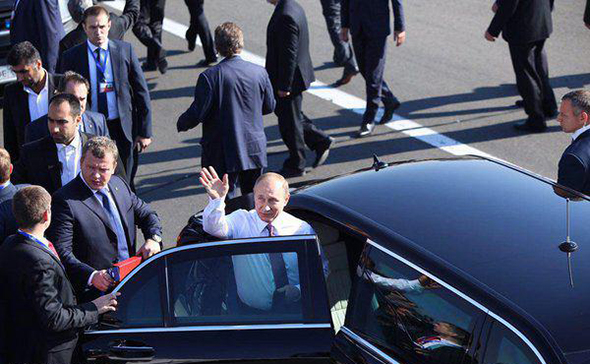 محمود واعظی وزیر ارتباطات و فنآوری اطلاعات در بدو ورود پوتین به ایران در فرودگاه مهرآباد از رییس جمهور روسیه استقبال کرد.