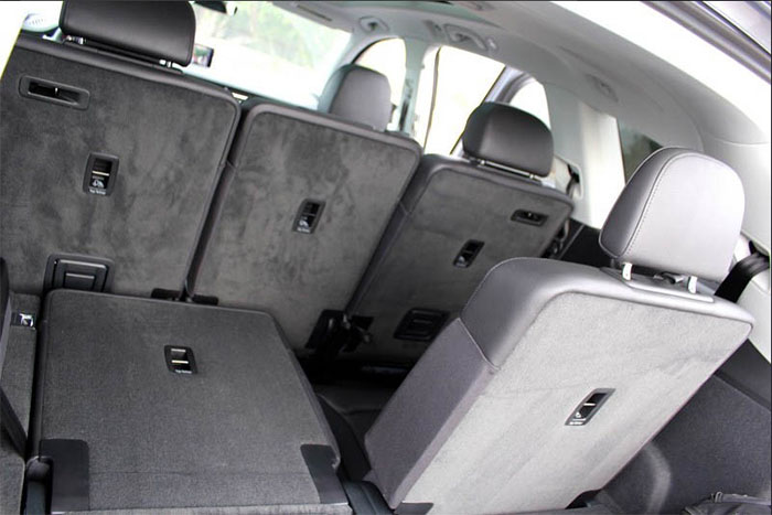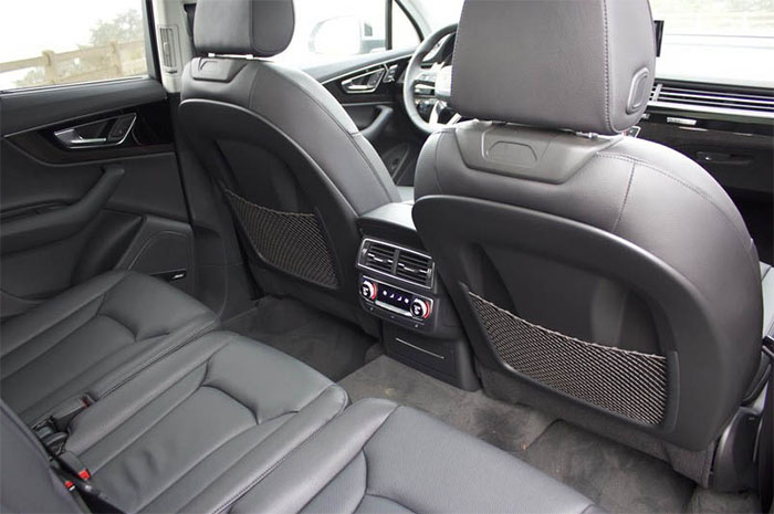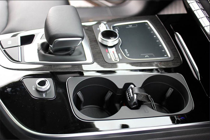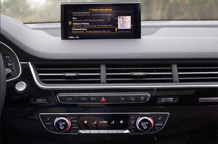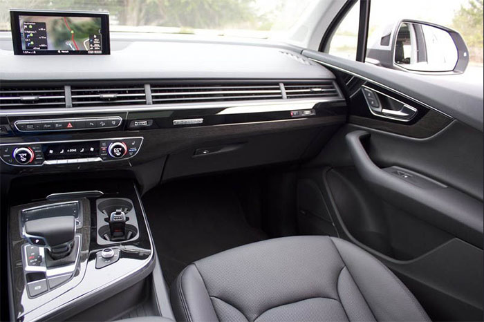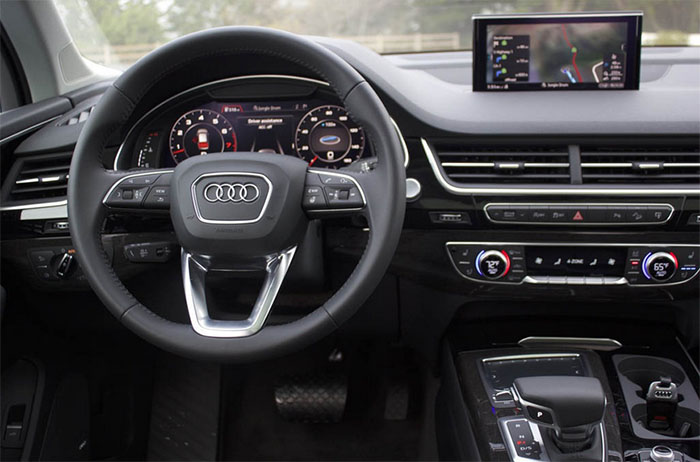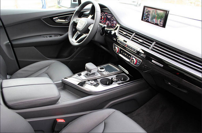 تجربه فضای داخل کابین، انعکاسی از شرایط رانندگی در خود دارد. آئودی بار دیگر ثابت کرده که «طراحی کابین» یکی از نقاط قوتش است. در این کابین، به لطف طراحی مناسب و ارتفاع پایین داشبورد، دید بسیار خوبی نسبت به محیط اطراف ایجاد شده است. همچنین در کابین Q7 هیچ قطعه یا متریالی پیدا نمیکنید که حسّ یک شیء اضافی یا ارزانقیمت را داشته باشد. سیستم اطلاعات و سرگرمی آئودی MMI همچنان به عنوان سادهترین سیستم برای استفاده در هنگام رانندگی، باقی مانده است. راهبری نقشههای گوگل و ویژگی جدید «کابین دیجیتال» آئودی، در کنار معرفی «اپل کار پلی» از دیگر مواردی هستند که به تجربه کار با این سیستم اضافه شدهاند (اندروید اتو احتمالاً در بهار سال آینده اضافه خواهد شد). برای علاقهمندان به موسیقی، یک آپشن سیستم صوتی پیشرفته Bang and Olufsen 3D درنظر گرفته شده که دارای ۲۳ اسپیکر است و توانی برابر ۱۹۰۰ وات دارد. البته برای داشتن این آپشن باید ۵ هزار دلار هزینه کرد، ولی سیستمی است که نمیتوان آن را با چیز دیگر مقایسه کرد. همچنین یک سیستم روشنایی داخلی LED برای کابین Q7 استفاد شده که امکان ۹۰۰ ترکیب رنگی مختلف را در نورپردازی فراهم میکند.