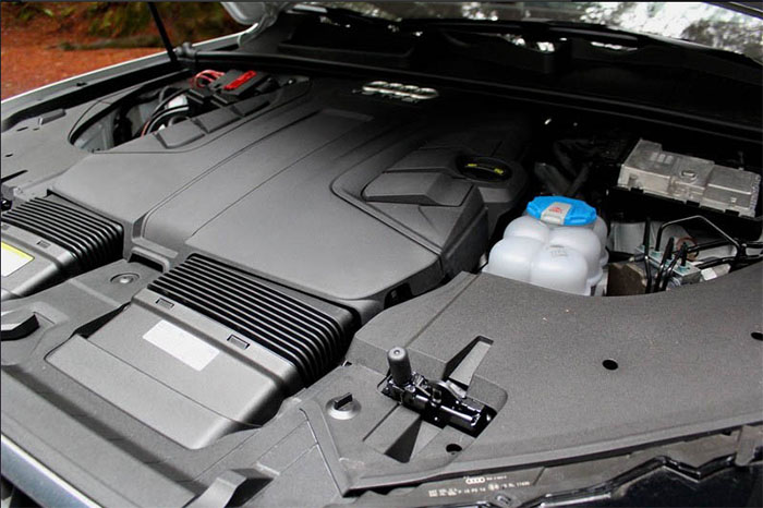 علاوه بر اضافهکردن سبکی، سیستم فرمان چهار چرخ و سیستم تعلیق گازی که برای خودرویی که ظاهرش به خودروهای «چابک» نمیخورد، سرعت و چابکی به ارمغان آوردهاند، نقش نسخه جدید موتور سوپرشارژر ۳ لیتری V6 آئودی را نباید نادیده گرفت. این موتور با قدرتی به میزان ۳۳۳ اسببخار و گشتاور حداکثری برابر ۴۴۰/۶ نیوتنمتر در بازه ۲۹۰۰ تا ۵۳۰۰ دور بر دقیقه، آئودی ۲۲۵۱ کیلوگرمی را در عرض ۵/۷ ثانیه به سرعت ۹۶/۶ کیلومتر بر ساعت میرساند و همین روند را تا رسیدن به سقف سرعت ۲۰۹/۲ کیلومتر بر ساعت ادامه میدهد. هیچ ضعفی در عملکرد سوپرشارژر مشاهده نمیشود و در همین حال، در زمان مناسب خود را از میللنگ جدا میکند تا در مصرف سوخت خودرو صرفهجویی شود.