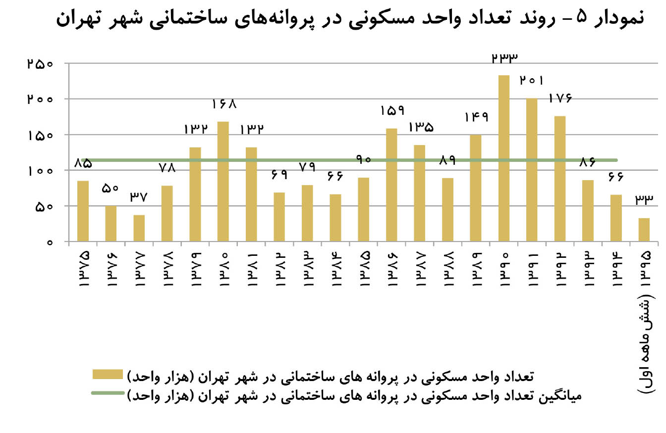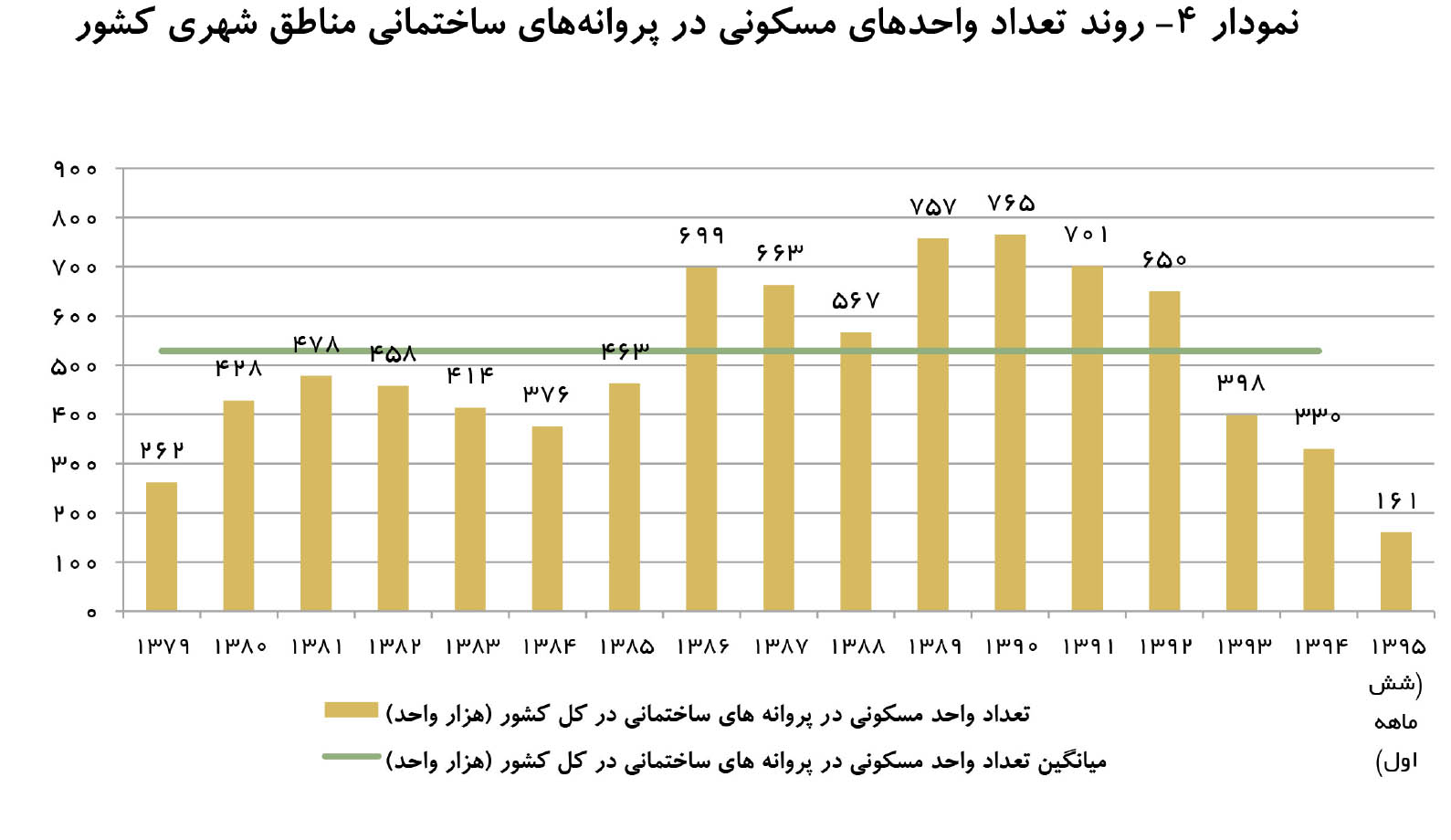 چنین است که بهرغم افزایش تعداد پروانههای مسکونی مناطق شهری (نمودار 4)، مشکل واحدهای مسکونی مصرفی طبقات متوسط حلنشده باقی ماند.