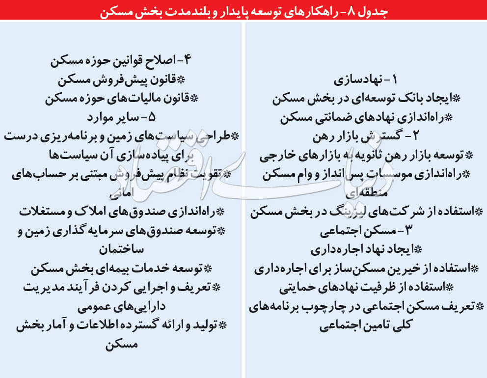 البته غیر از این، فعالیتهای جاری و مورد اشاره در بندهای بالا، برنامه بلندمدتتر وزارت راه و شهرسازی در جدول 8 خلاصه شده است.
