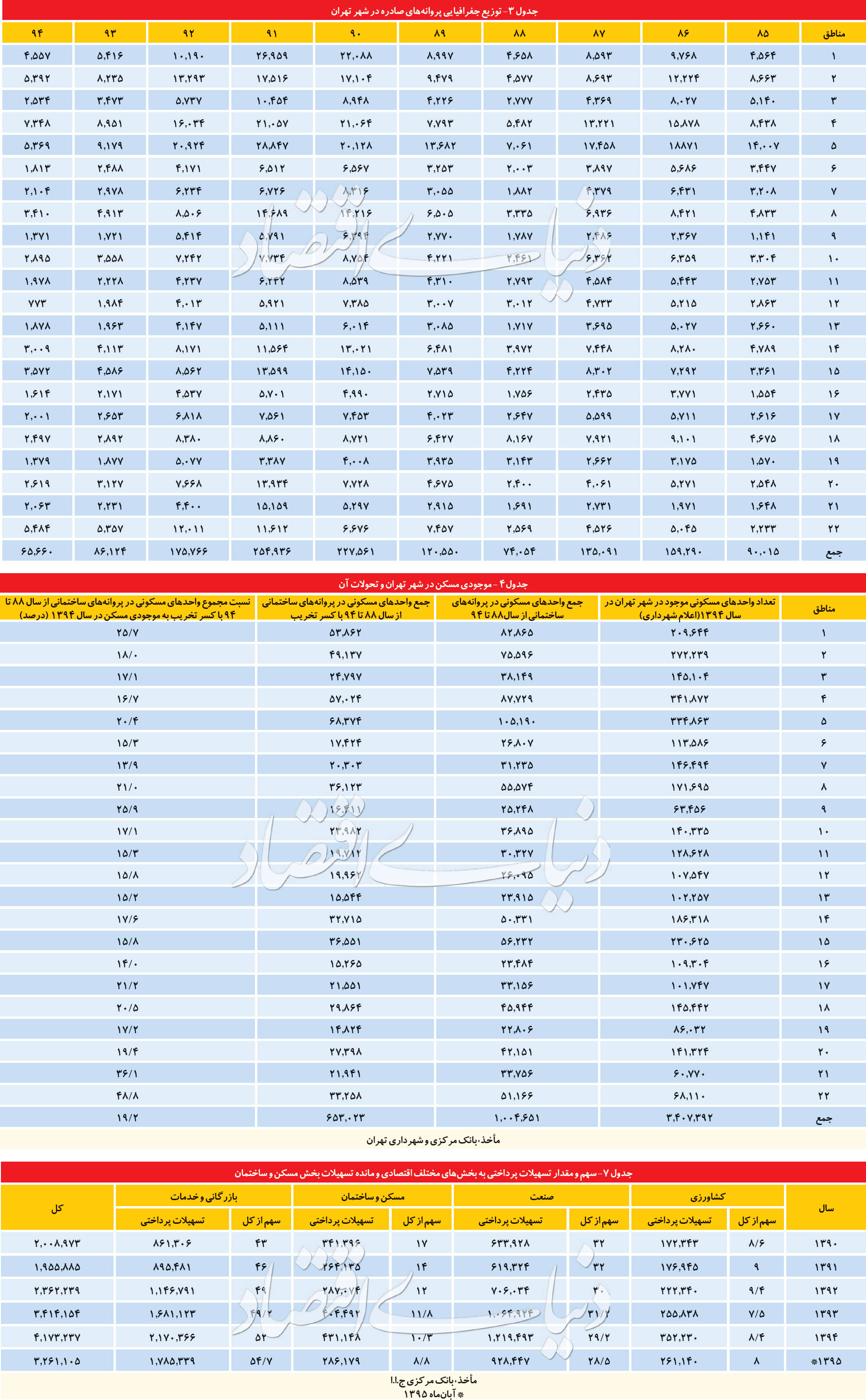 به این گونه در شرایطی که با حدود 1/8 میلیون خانه خالی عمدتا گرانقیمت در شهرهای بزرگ - که بیش از 100 میلیارد دلار پول را حبس کرده و به تنگنای اعتباری جاری انجامیده- روبهرو هستیم، کشور به شدت به منابع مالی جهت تامین واحدهای کوچک ارزانقیمت برای خانهاولیها و بازسازی بافتهای فرسوده نیازمند است؛ در حالی که در شهر تهران ظرف چهار سال (89 تا 92) برابر 23 درصد کل واحدهای مسکونی موجود در شهر، ظرفیت مسکونی ایجاد شد و در مقابل موجودی 100 مسکن فقط 86 خانوار وجود دارد، هنوز در تهران پروانه ساختمانی واحدهای گرانقیمت بیشتر صادر میشود. یعنی، عرضه کماکان سفتهبازانه است، در حالی که تقاضا مصرفی شده است.